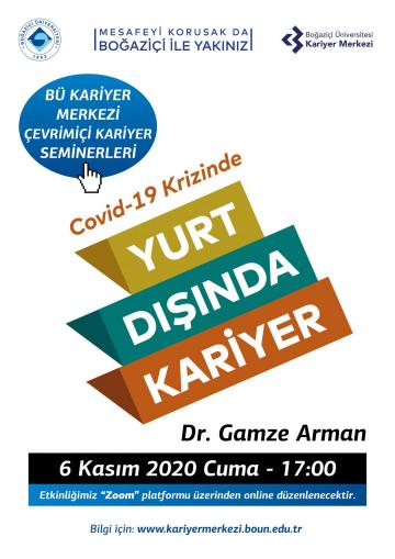 BÜ KariyerMerkezi:Çevrimiçi Kariyer Seminerleri: Covid 19 Krizinde Yurtdışında Kariyer Gamze Arman / Kariyer Merkezi