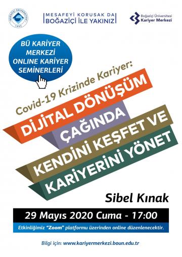 (Online Kariyer Semineri) Covid-19 Krizinde Kariyer: Dijital Dönüşüm Çağinda Kendini Keşfet Ve Kariyerini Yönet Sibel Kınak / Kariyer Merkezi